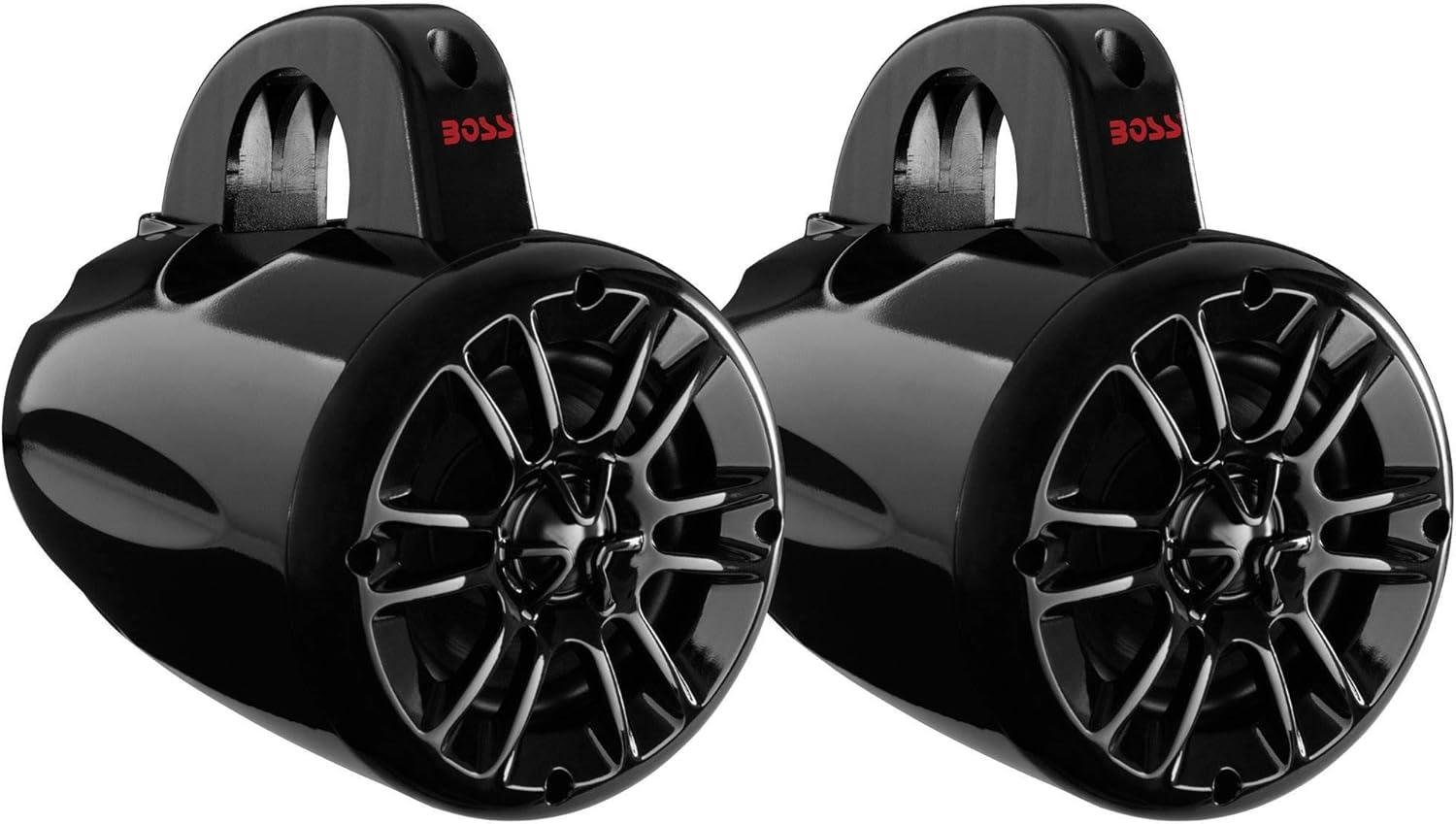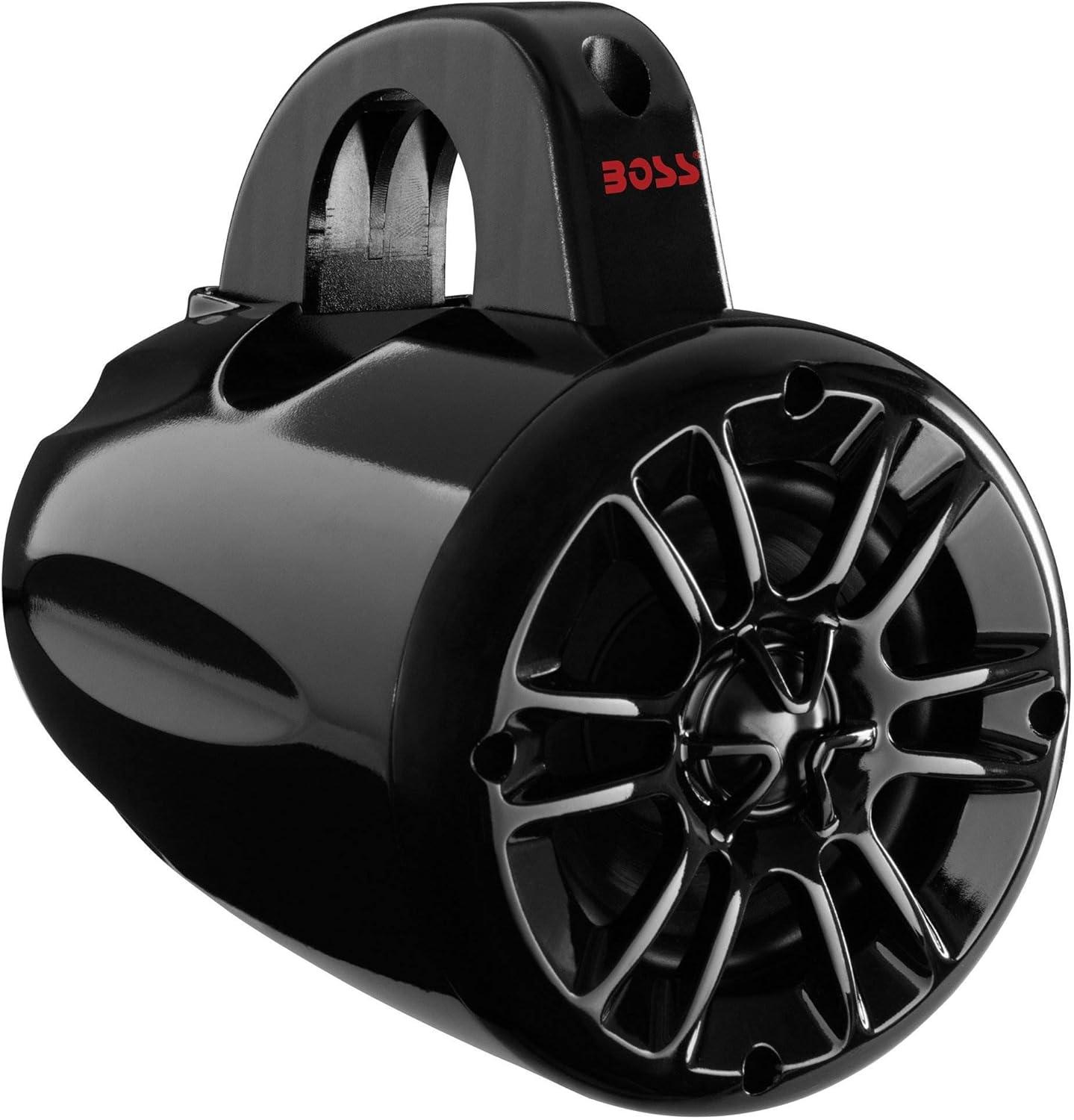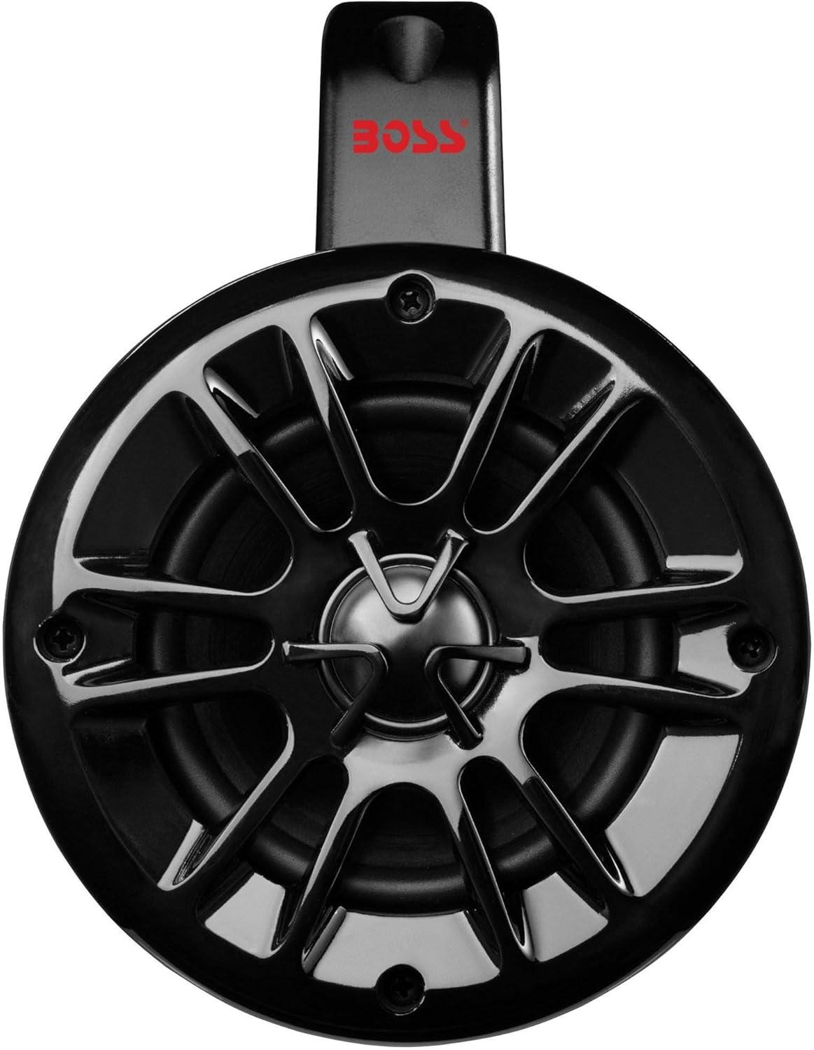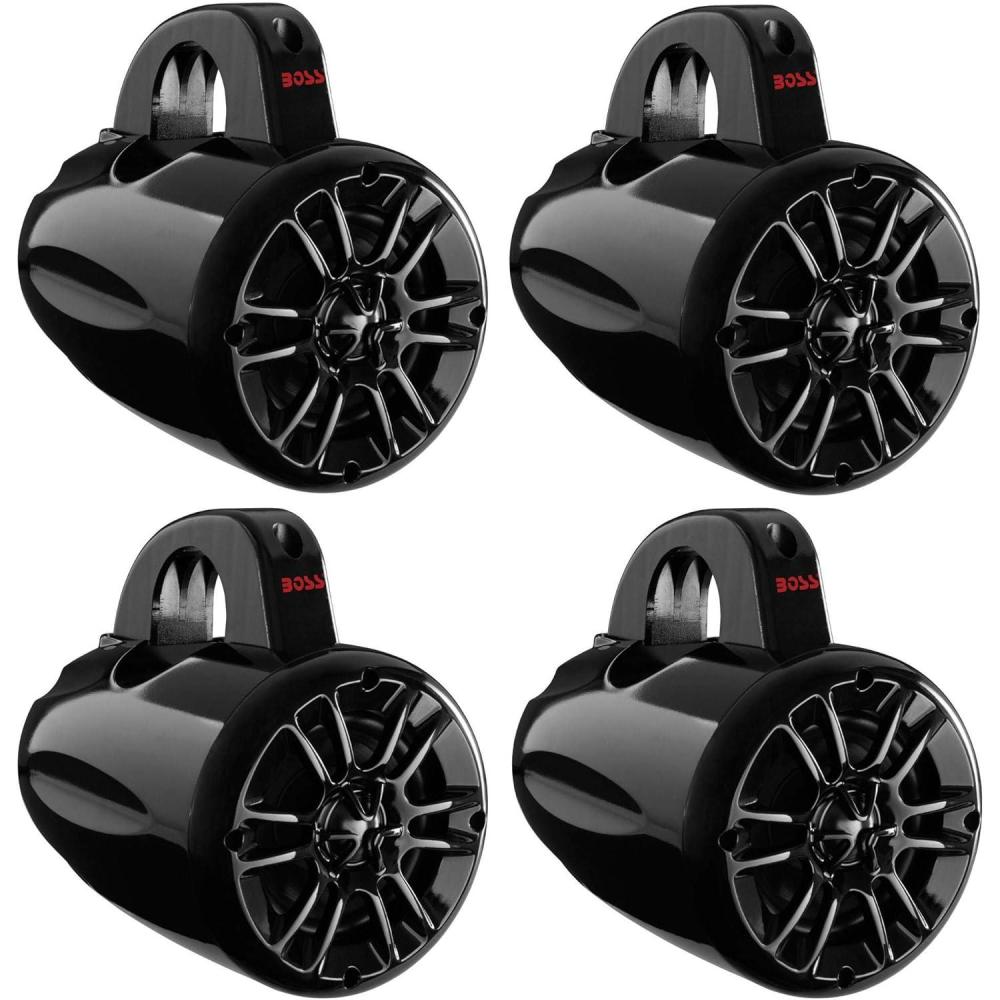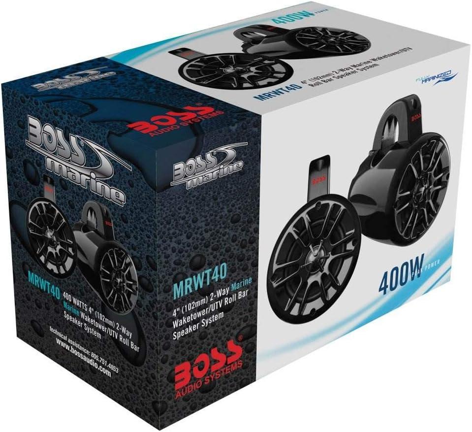 Next time you hit the open water, bring a little background music with you. The Boss Audio 4 Inch 2 Way 400W Marine Waketower Speakers attach to your waketower so your tunes can join you on your excursion. This package includes 4 speakers. These speakers attach to your waketower via 1.25 2 inch mounting clips. They are fully marinized, meaning the polypropylene woofer cone and rubber surround are completely waterproof. Each speaker features a 1 inch tweeter. The pair are rated at 400 watts maximum and 200 watts RMS of power handling.