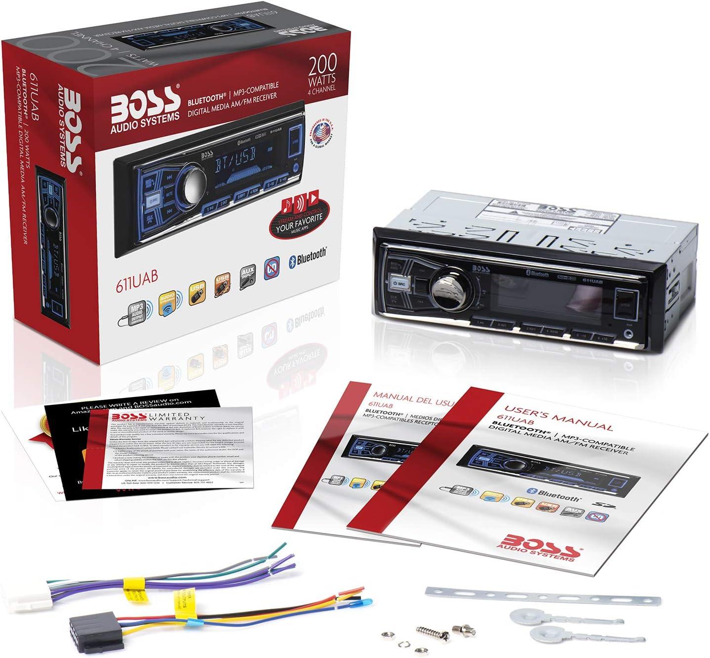 BOSS Audio Systems 632UAB Car Stereo - Single Din, Bluetooth, No CD DVD Player, AM/FM Radio Receiver, Wireless Remote Control, Aux in, USB(611UAB Bluetooth)