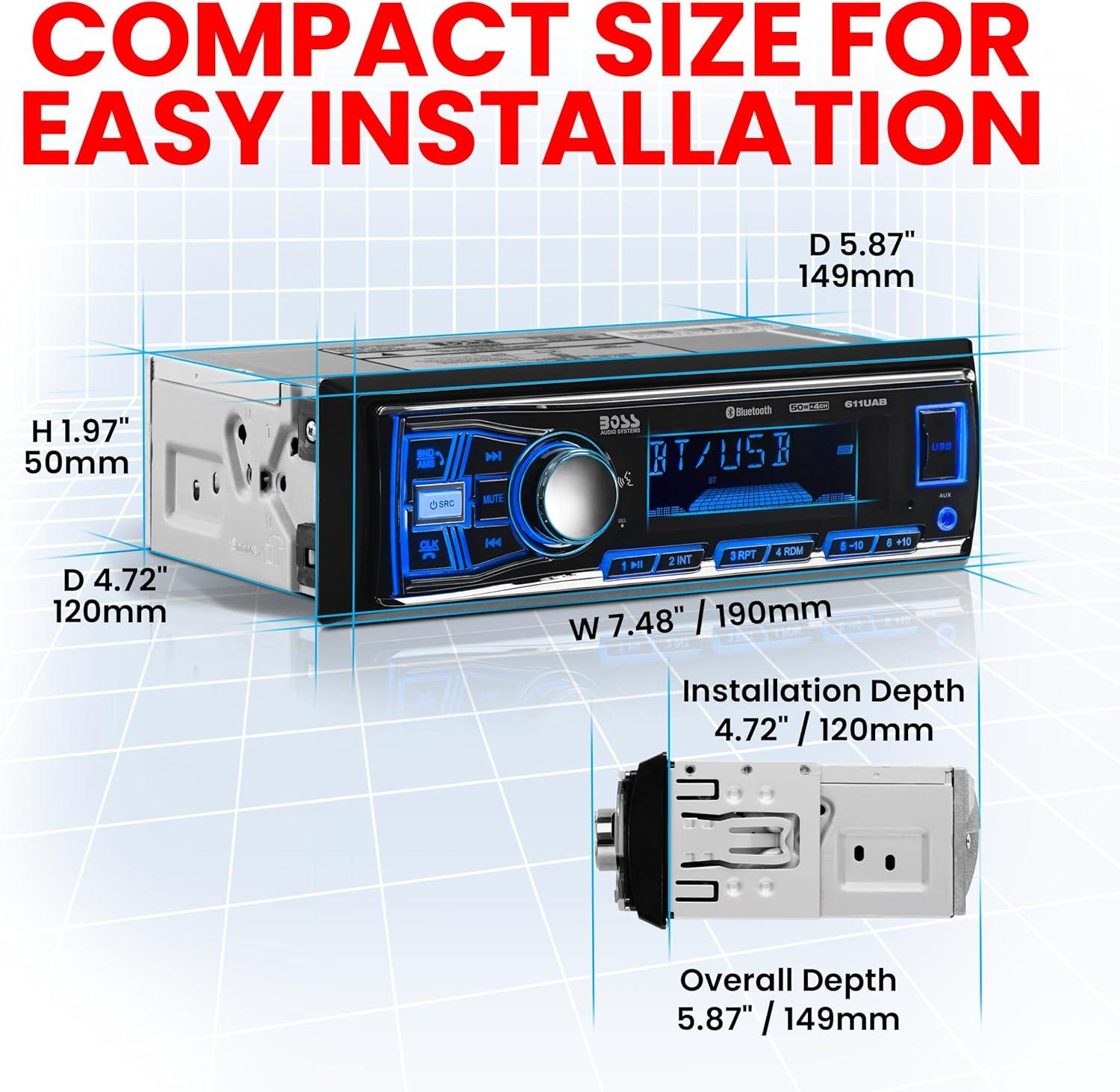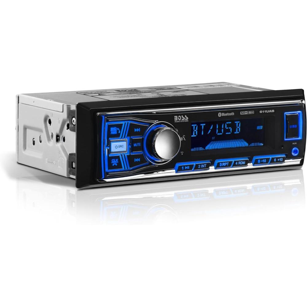 BOSS Audio Systems 632UAB Car Stereo – Single Din, Bluetooth, No CD DVD Player, AM/FM Radio Receiver, Wireless Remote Control, Aux in, USB(611UAB + 2 Speaker Package)