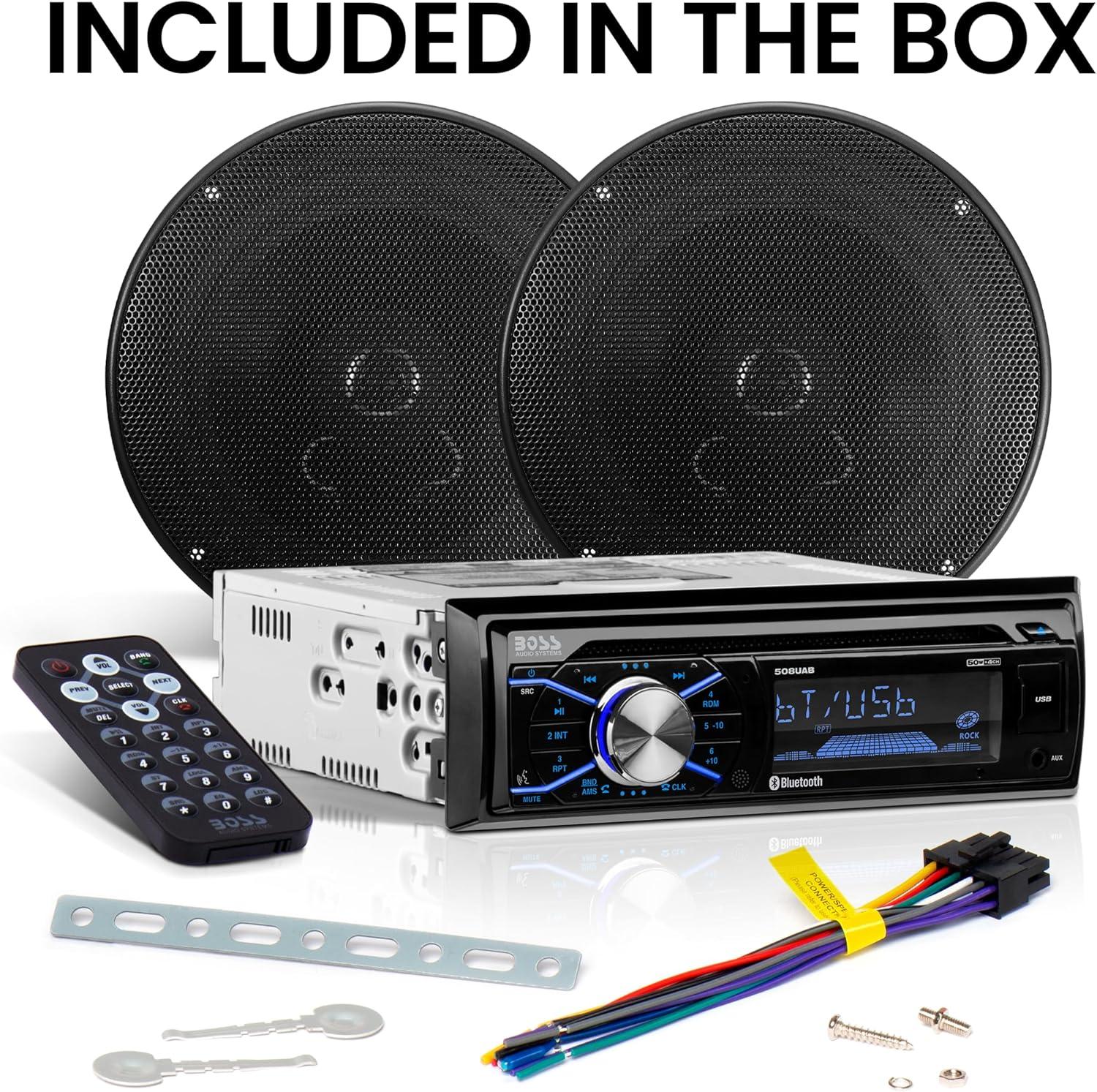 BOSS Audio Systems 750BRGB Car Stereo – Single Din, Bluetooth, CD Player, AM/FM Radio Receiver, USB, AUX Input, Multi Color Illumination(508UAB + 2 Speaker Package)
