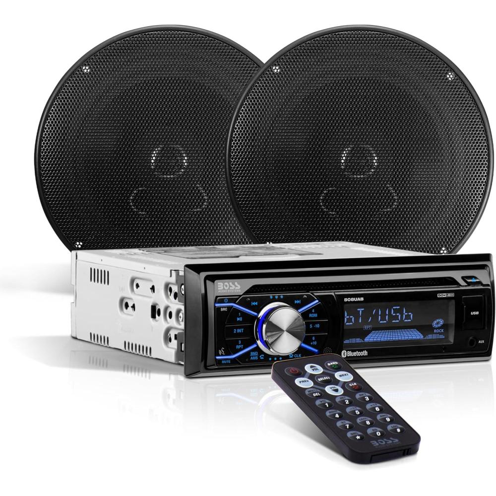 BOSS Audio Systems 750BRGB Car Stereo - Single Din, Bluetooth, CD Player, AM/FM Radio Receiver, USB, AUX Input, Multi Color Illumination(508UAB + 2 Speaker Package)