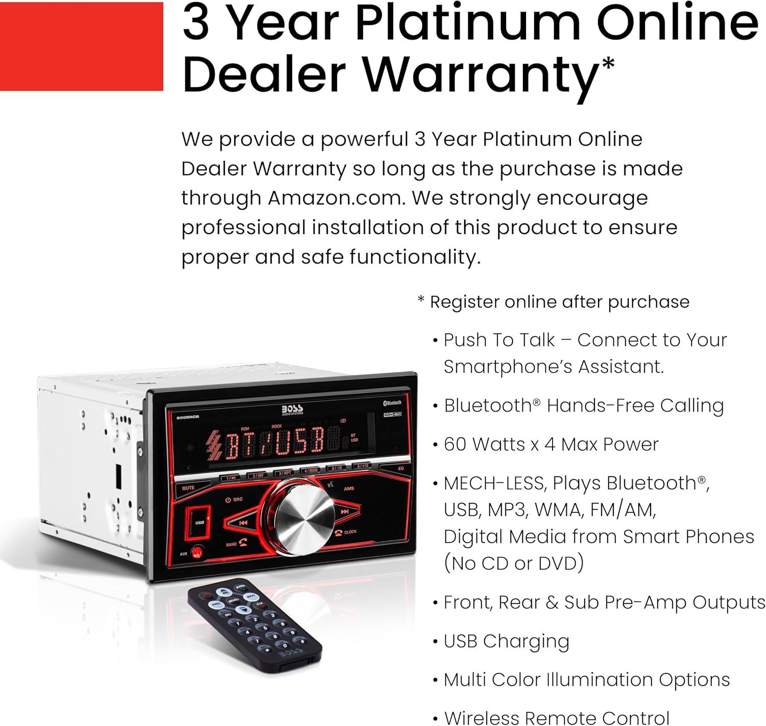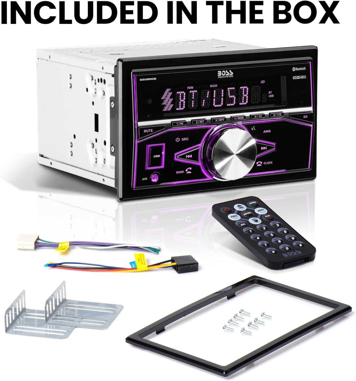Listen to all your favorite music with the Boss Audio 850BRGB Double-DIN CD/MP3 Player. Slide in a CD, connect your Smartphone or MP3 Player to the Auxiliary Input, turn on the AM/FM radio or plug into the USB port for more music options. You can also charge USB devices with the USB port. Bluetooth technology lets you play and control music apps like Pandora and Spotify and make calls hands-free. Choose your sound style with the built-in Preset EQ and change the color with the Multi-Color Illumination Options. Get more music choices with the Boss Audio 850BRGB.