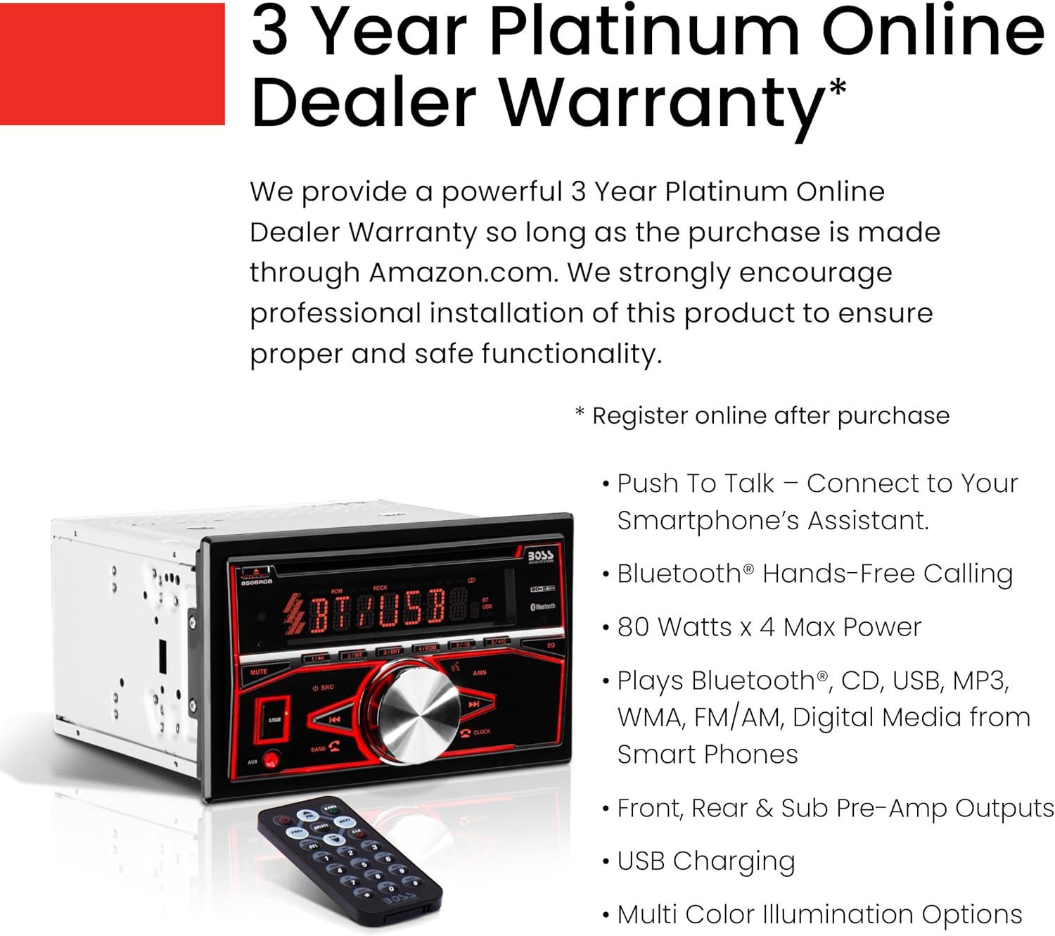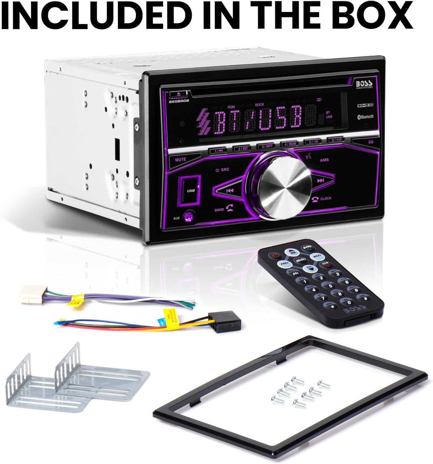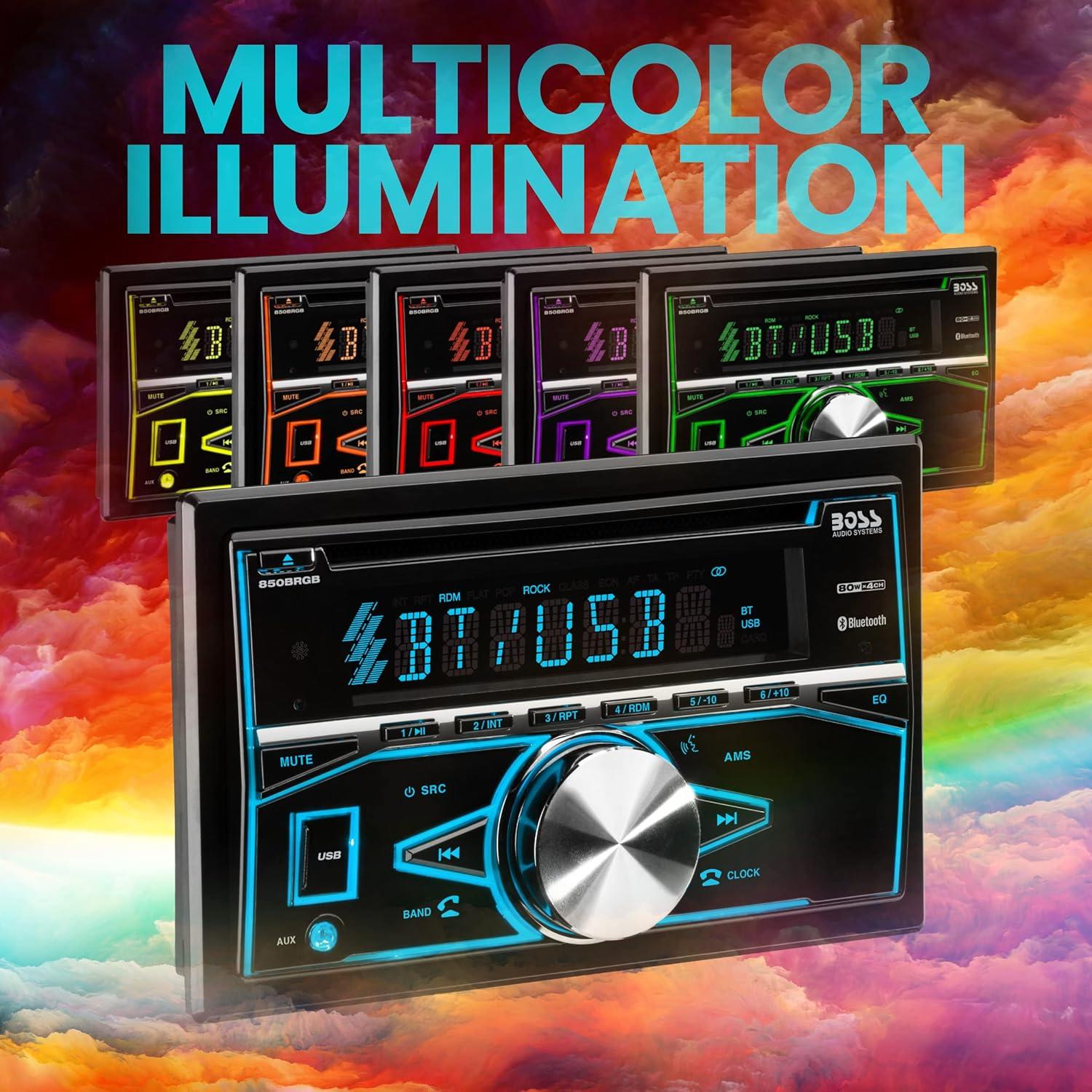 BOSS Audio Systems 850BRGB Car Stereo System – Double Din, Bluetooth Audio and Calling Head Unit, Aux In, USB, CD Player, Multi Color Illumination, AM/FM Radio Receiver, Hook Up To Amplifier(Stereo With CD)