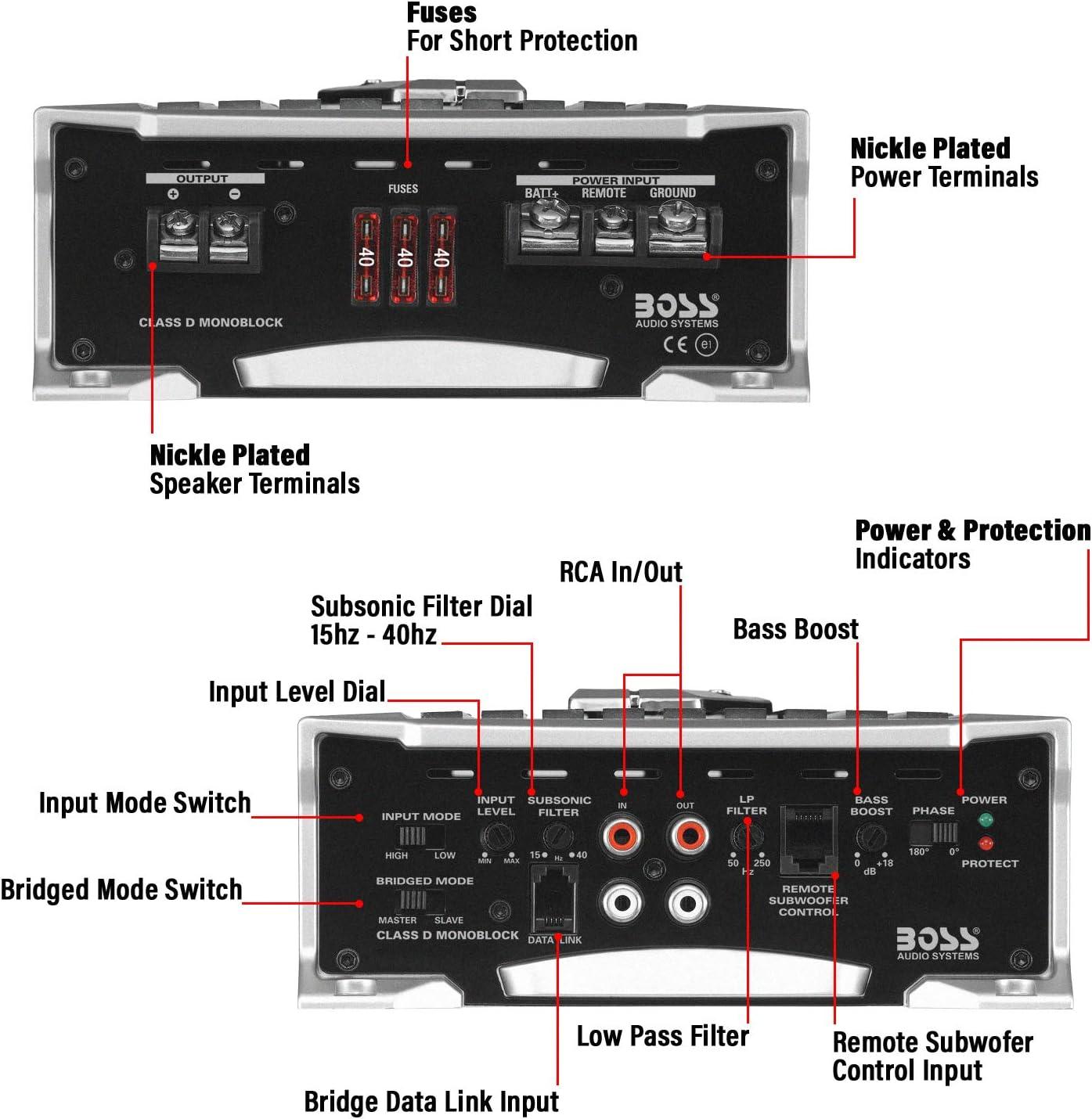 BOSS Audio Systems AR2000M Monoblock Car Amplifier - 2000 High Output, High/Low Level Inputs, Low-Pass Crossover, Hook Up to Subwoofer for Bass(Class D Monoblock 4000W)