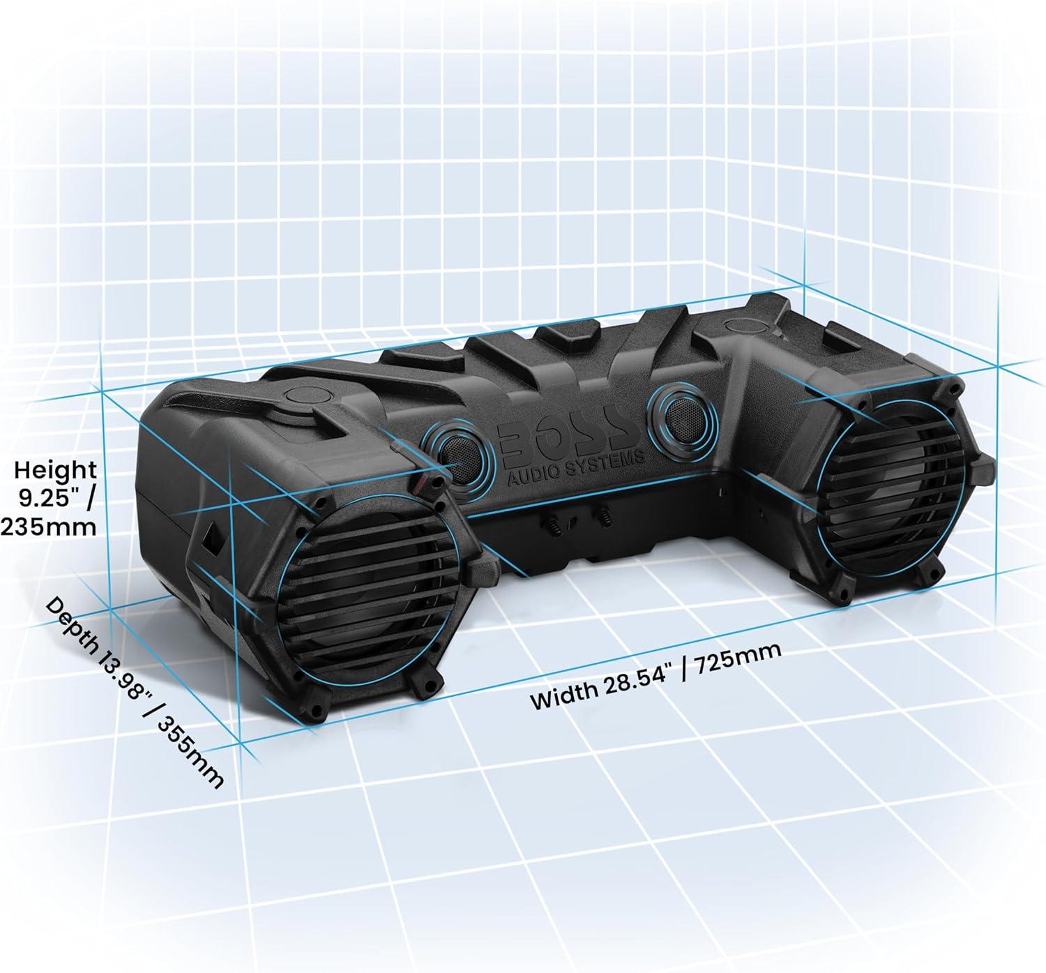 BOSS Audio Systems ATVB95LED ATV UTV Sound System – 8 Inch Full Range Stereo Speakers, 1.5 Inch Tweeters, IPX5 Weatherproof, Built-in Amplifier, Bluetooth Remote, Light Bar, Storage Compartment