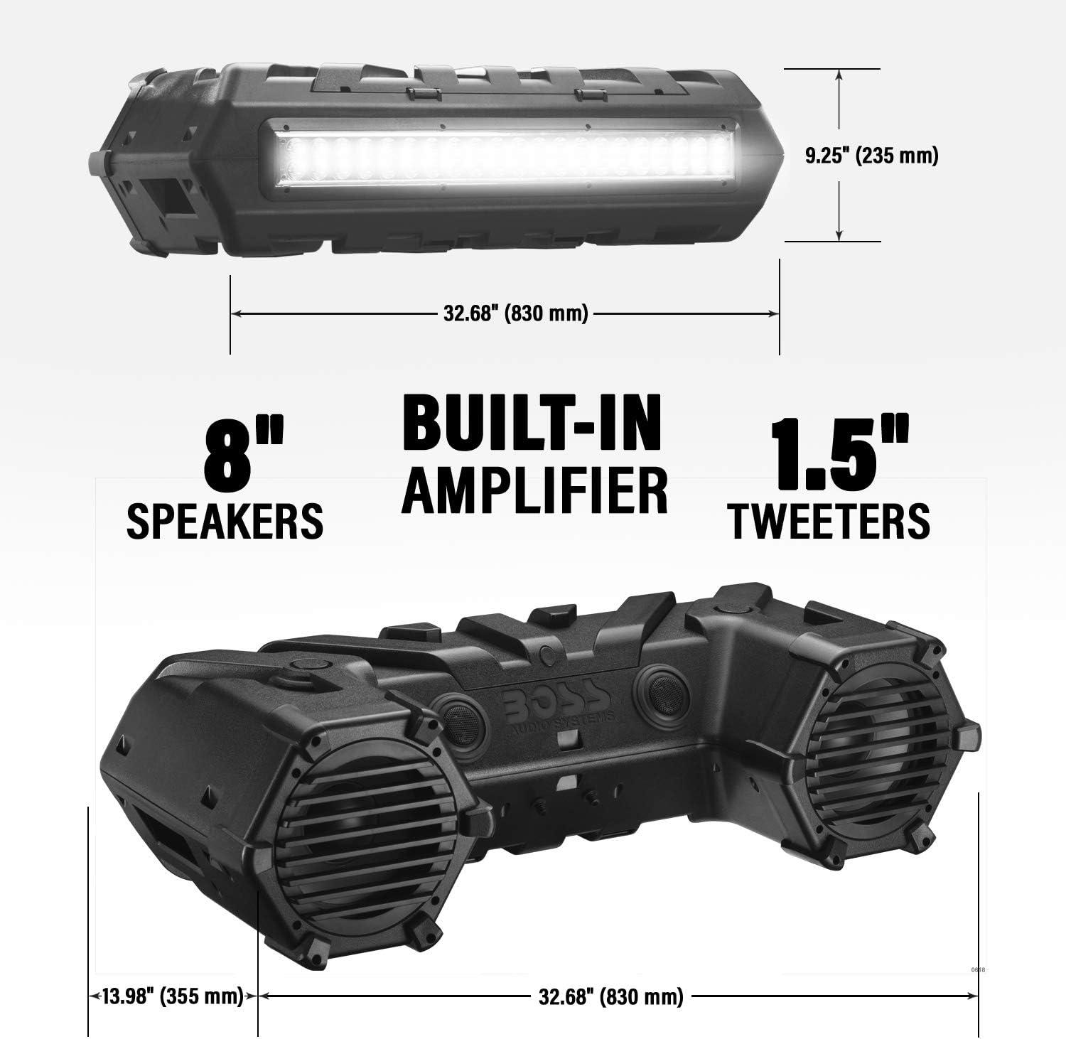 BOSS Audio Systems ATVB95LED ATV UTV Sound System – 8 Inch Full Range Stereo Speakers, 1.5 Inch Tweeters, IPX5 Weatherproof, Built-in Amplifier, Bluetooth Remote, Light Bar, Storage Compartment(8″ Speakers Black + LED Lightbar)