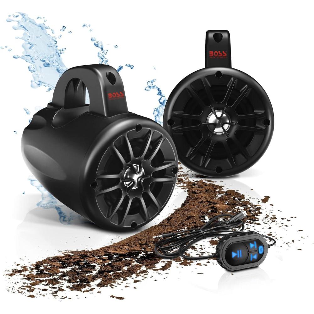 BOSS Audio Systems B62ABT ATV UTV Marine Weatherproof Waketower System – Amplified, 6.5 Inch Stereo Speakers, Full Range, 2 Way, Tweeters, Bluetooth, IPX5 Rated, Sold in Pairs, for Boat, Wake Tower(4″ Speakers Black 500W)