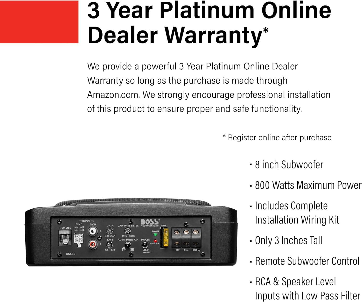 Space Saver – If you are tight on space, this is a great solution for you. The combination of amplifier and subwoofer all into one, makes this ideal for spatially challenged vehicles. With a slim design, there are a few installation options