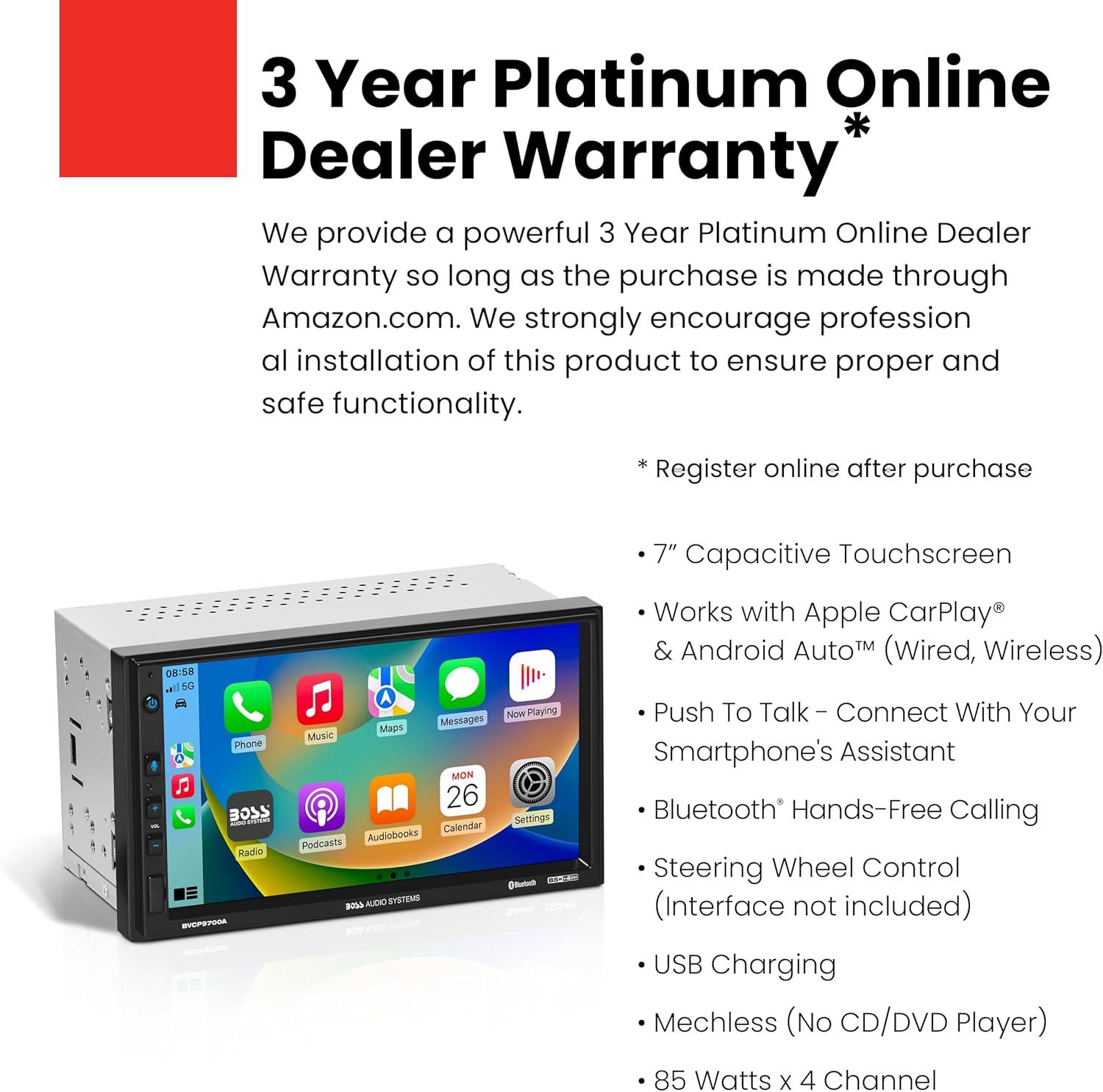 BOSS Audio Systems provides a powerful 3-year platinum online dealer warranty so long as the purchase is made through Amazon.com. We strongly encourage professional installation of this product to ensure proper and safe functionality