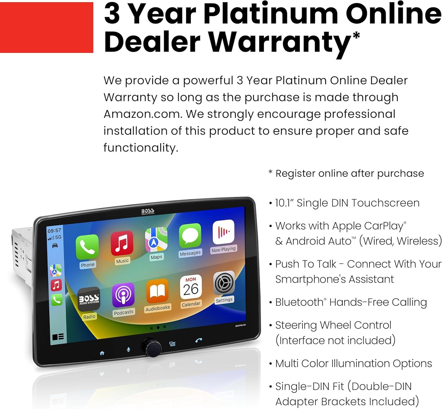 – WARRANTY: BOSS Audio Systems provides a powerful 3-year platinum online dealer warranty so long as the purchase is made through Amazon.com. We strongly encourage professional installation of this product to ensure proper and safe functionality