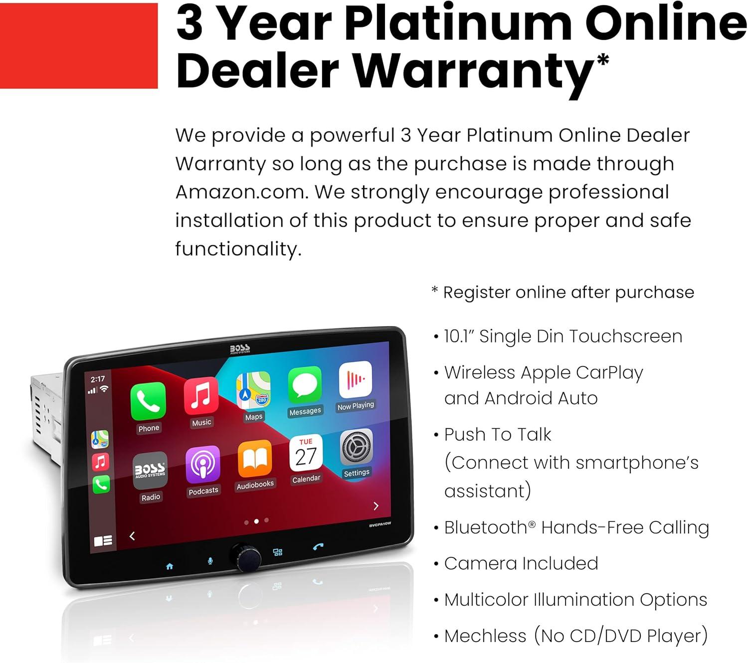 BOSS Audio Systems BCPA8W Car Stereo – Wireless Apple CarPlay & Android Auto, Single Din, 8 Inch Touchscreen, Bluetooth, No CD DVD Player, AM/FM Radio Receiver(10.1 Inch Wireless)