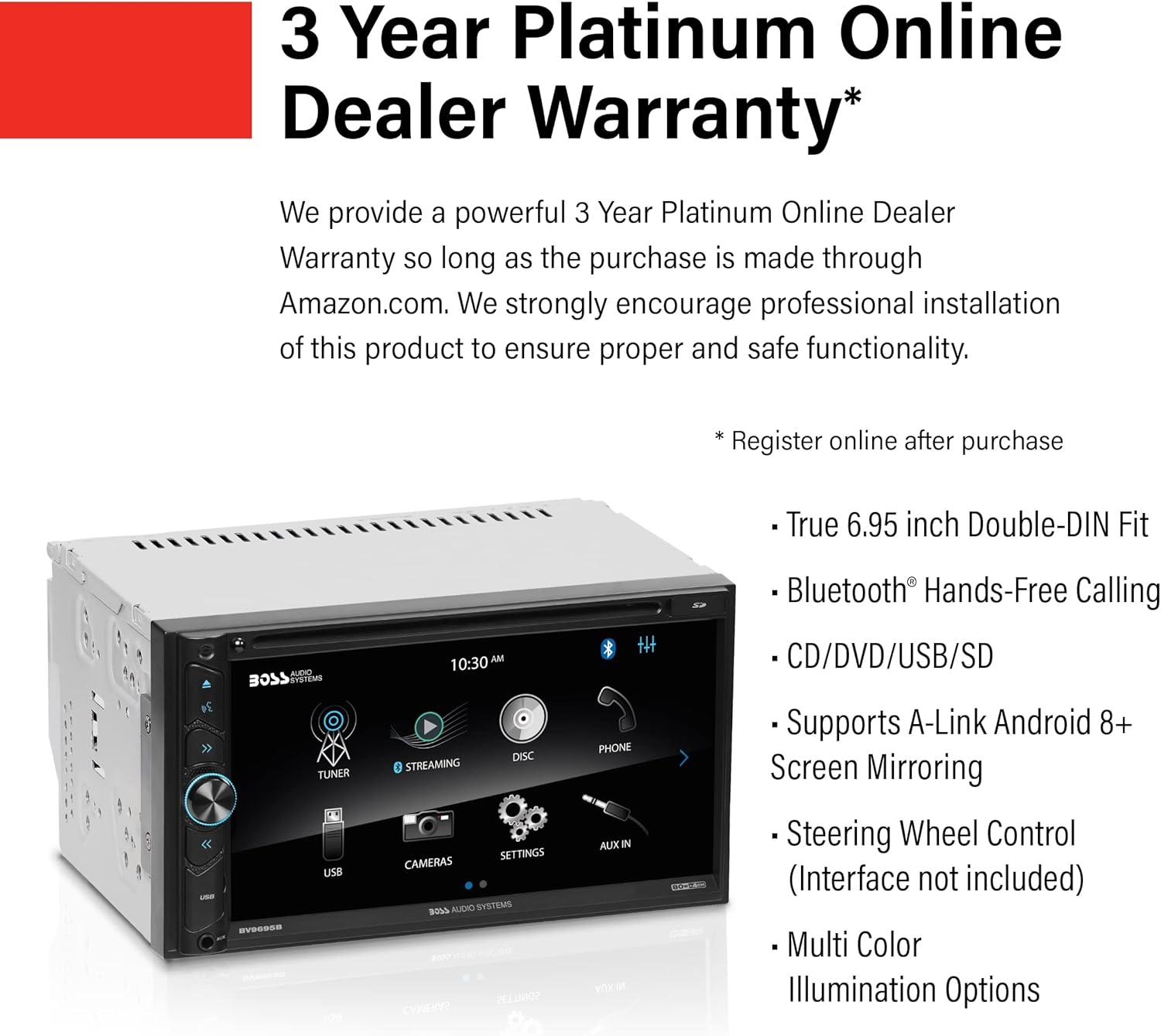 BOSS Audio Systems BV9695B Car Audio Stereo System – 6.95 Inch Double Din, Touchscreen, Bluetooth Audio and Calling Head Unit, CD Player, A-Link (Screen Mirroring), AM/FM Radio Receiver, For Amplifier(6.95″ w/ CD)