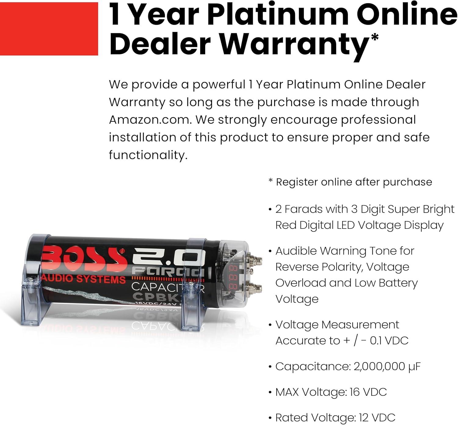 BOSS Audio Systems Cap18 – 18 Farad Car Capacitor For Energy Storage To Enhance Bass Demand From Audio System, Audible Warning Tone For Reverse Polarity, Voltage Overload Low Battery Voltage Led(8 Farad)