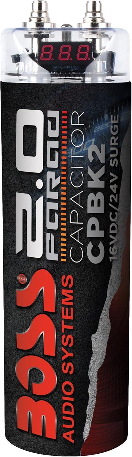 BOSS Audio Systems Cap18 - 18 Farad Car Capacitor For Energy Storage To Enhance Bass Demand From Audio System, Audible Warning Tone For Reverse Polarity, Voltage Overload Low Battery Voltage Led(2 Farad Black)