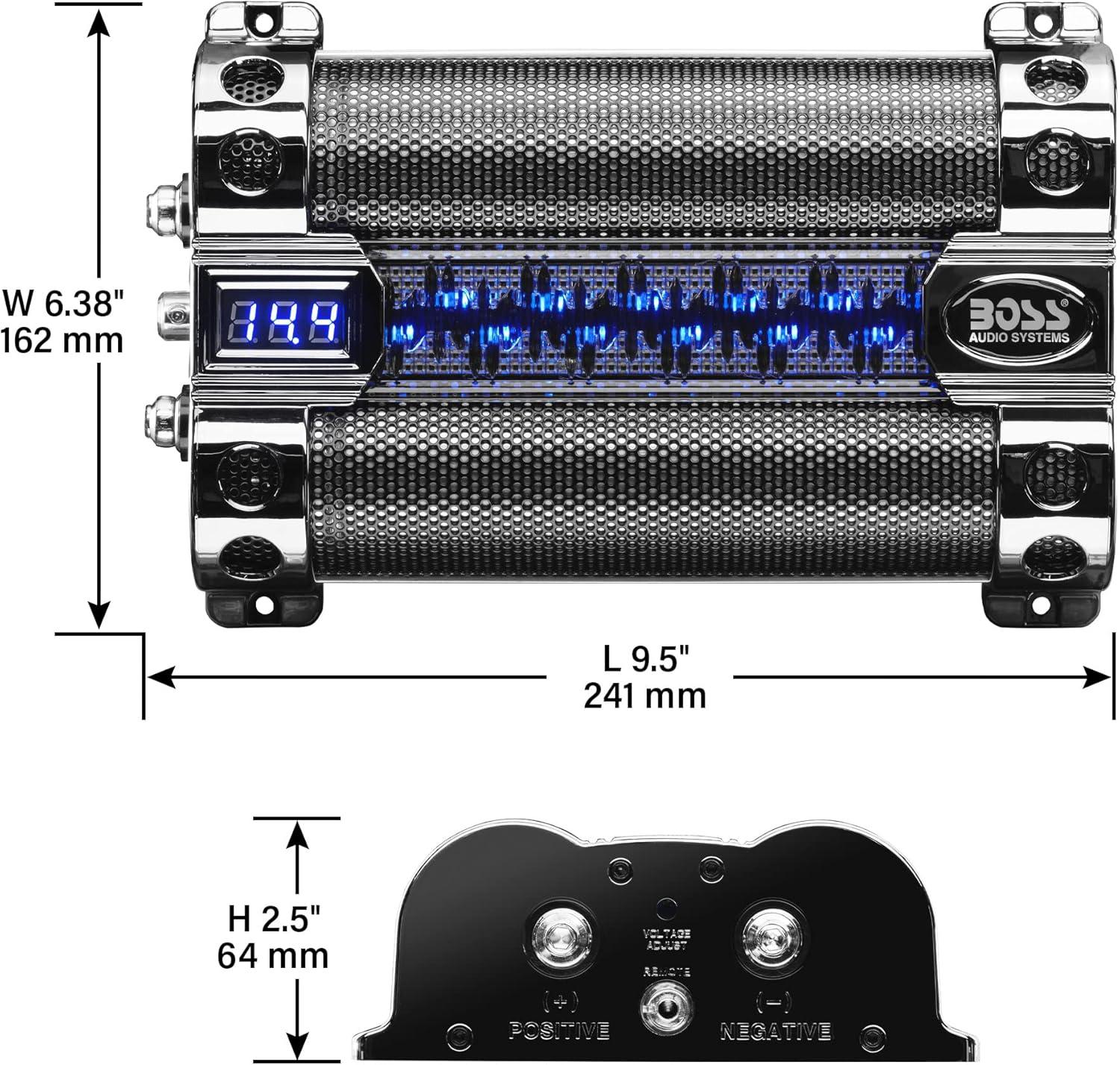 BOSS Audio Systems Cap18 – 18 Farad Car Capacitor For Energy Storage To Enhance Bass Demand From Audio System, Audible Warning Tone For Reverse Polarity, Voltage Overload Low Battery Voltage Led(8 Farad)