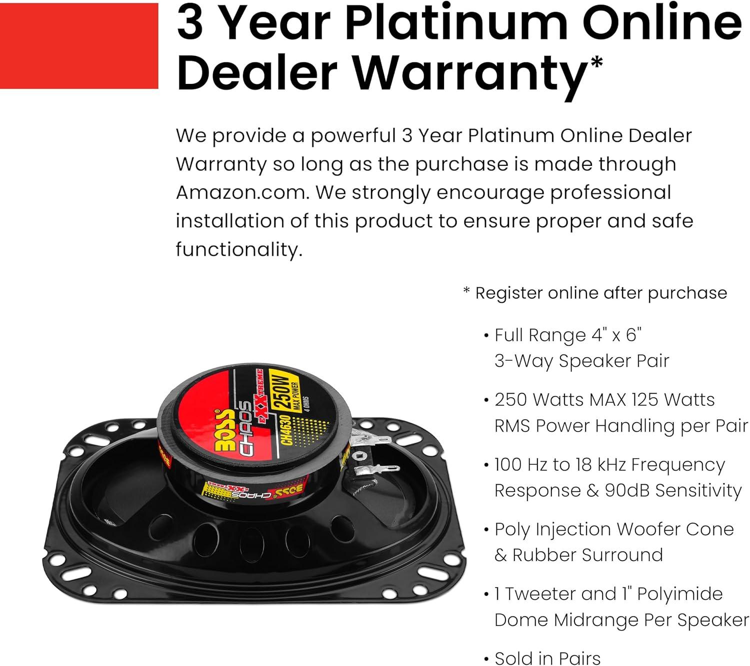 BOSS Audio Systems provides a powerful 3-year platinum online dealer warranty so long as the purchase is made through Amazon.com. We strongly encourage professional installation of this product to ensure proper and safe functionality