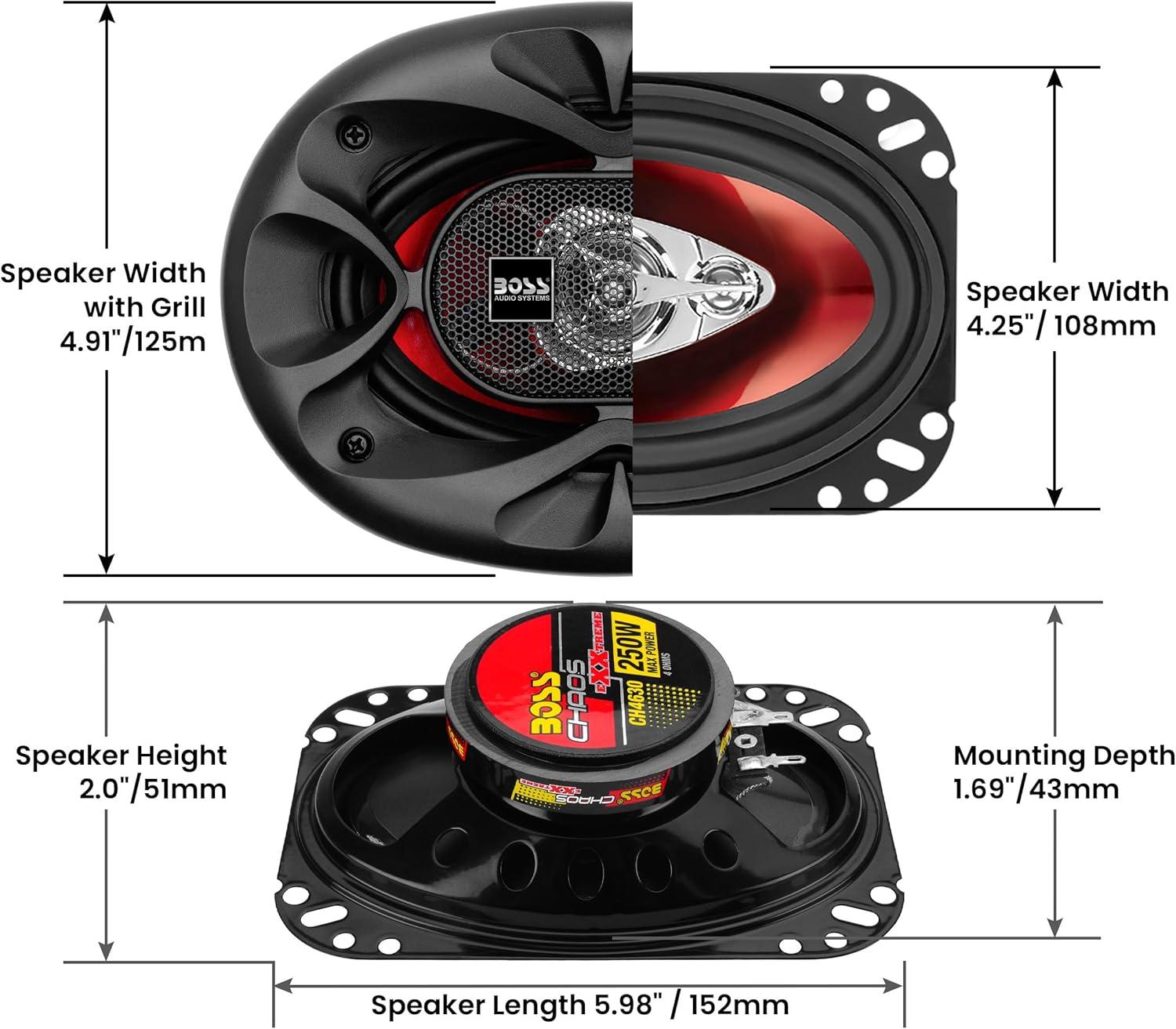 Dimensions: 4.7 x 3.4 x 2 inches, Impedance: 4 ohms, Mounting Depth: 1.5 inches, Mounting Hole: 3.1 inches