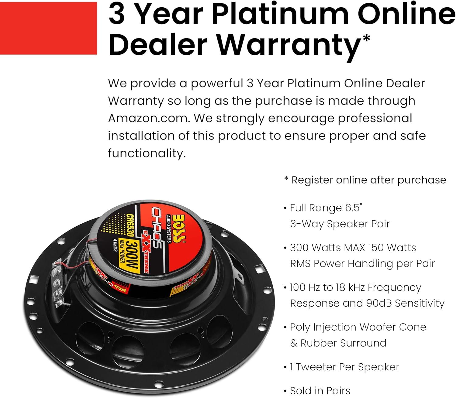 WARRANTY: BOSS Audio Systems provides a powerful 3-year platinum online dealer warranty so long as the purchase is made through Amazon.com. We strongly encourage professional installation of this product to ensure proper and safe functionality