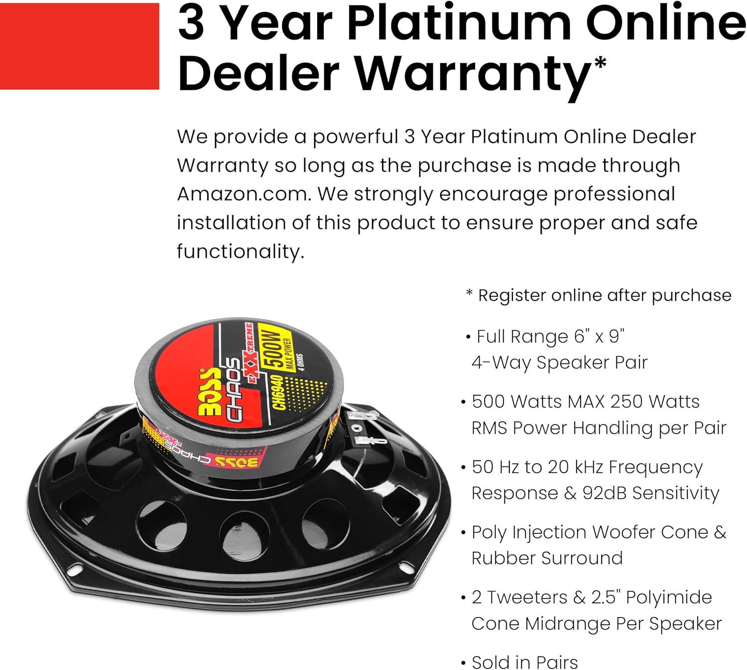 BOSS Audio Systems provides a powerful 3-year platinum online dealer warranty so long as the purchase is made through Amazon.com. We strongly encourage professional installation of this product to ensure proper and safe functionality