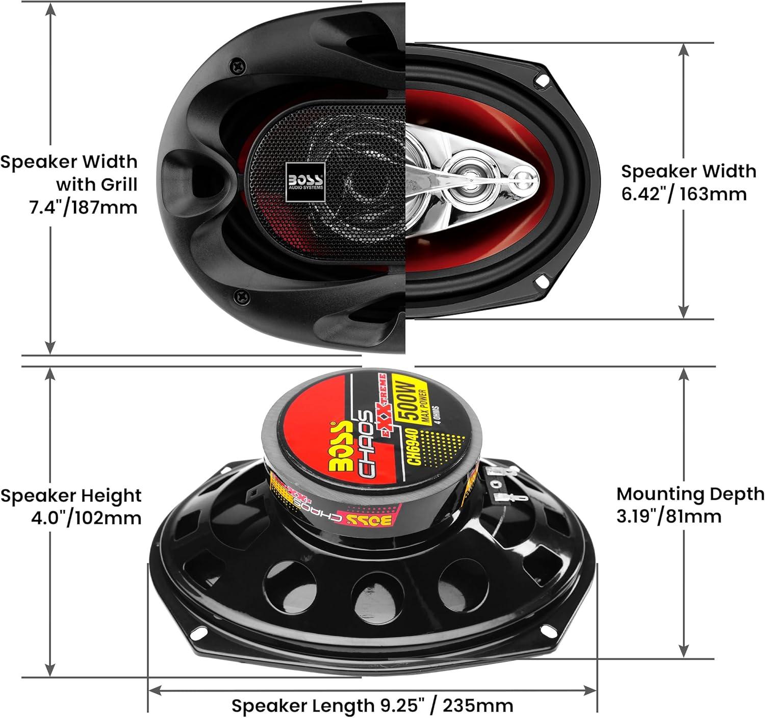 BOSS Audio Systems CH6940 Chaos Exxtreme Series 6 x 9 Inch Car Door Speakers – 500 Watts Max (per pair), Coaxial, 4 Way, Full Range, 4 Ohms, Sold in Pairs, Bocinas Para Carro