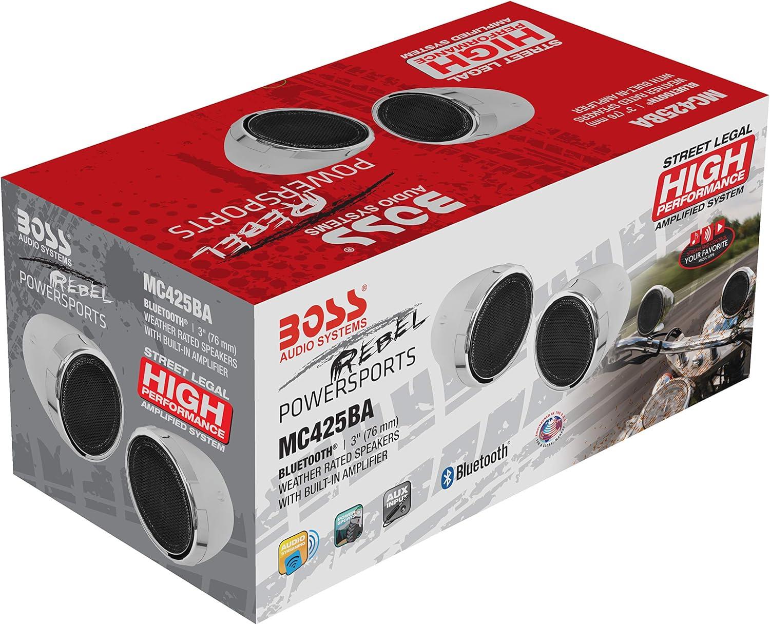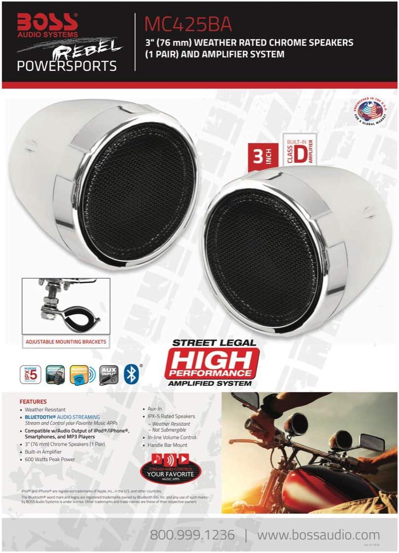 Speakers – The two 3-inch silver full range speakers have adjustable brackets that will fit handlebars ranging from .75” to 1.5”.
