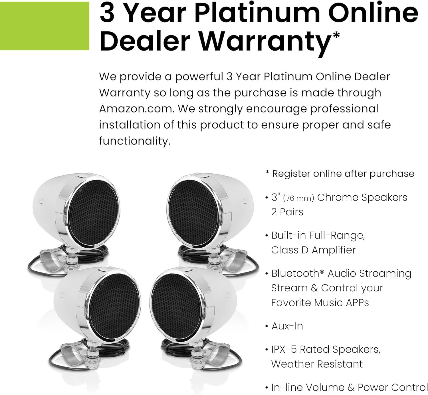 BOSS Audio Systems MC475BA 3 Inch Motorcycle Speakers – Bluetooth, Built-in Amplifier, Weatherproof, Volume Control, ATV UTV Compatible