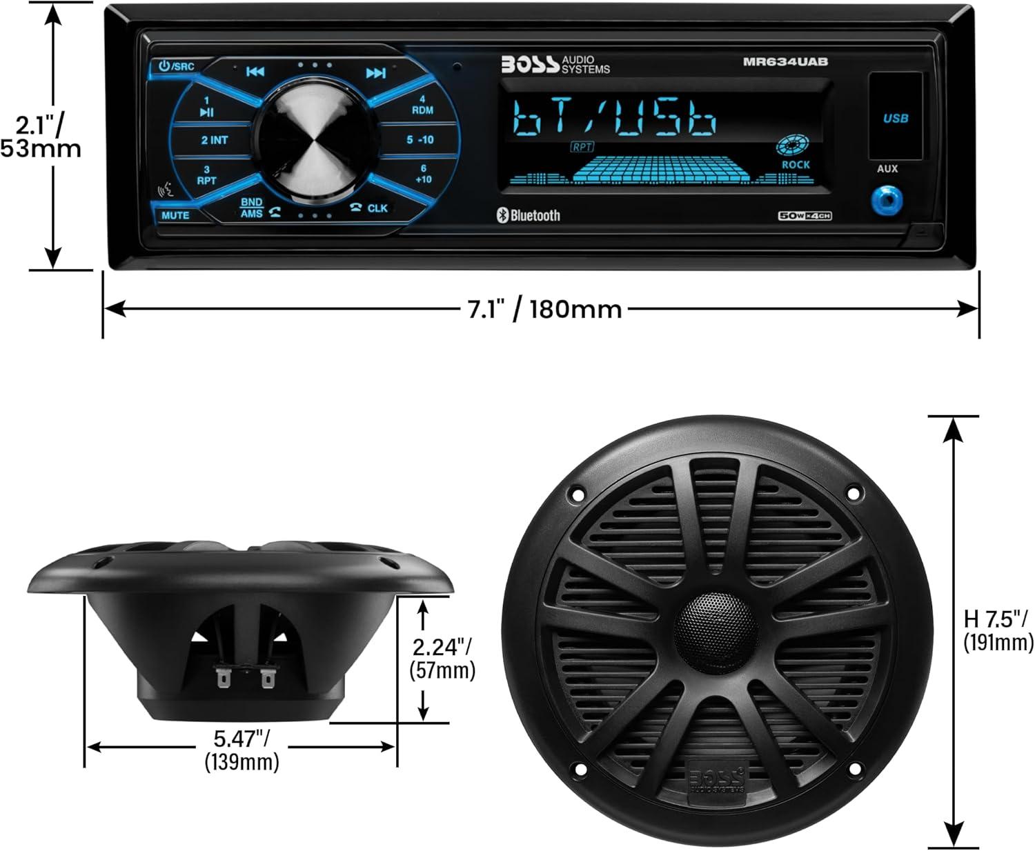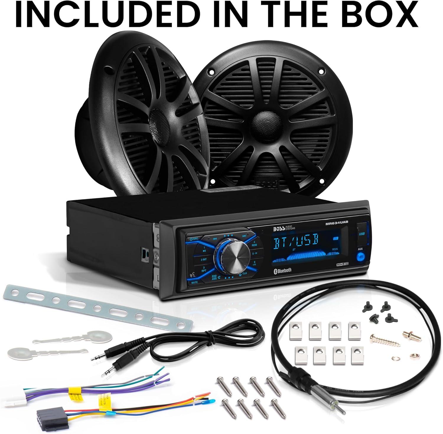 BOSS Audio Systems MCK632WB.6 Marine Boat Bluetooth Stereo & 6.5 Inch Speakers – No CD DVD Player, AM/FFM Radio Receiver Head Unit, Dipole Antenna