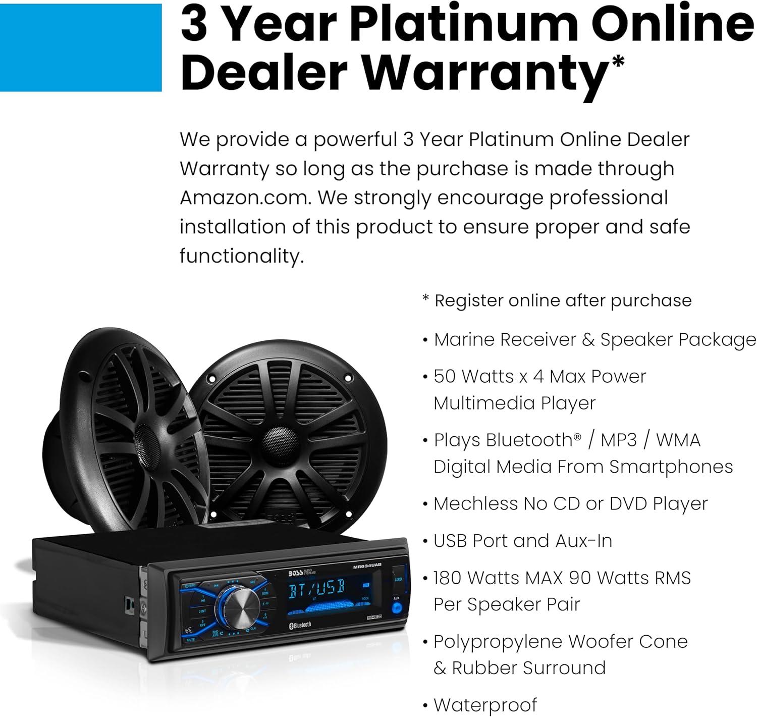BOSS Audio Systems provides a powerful 3-year platinum online dealer warranty so long as the purchase is made through Amazon.com. We strongly encourage professional installation of this product to ensure proper and safe functionality