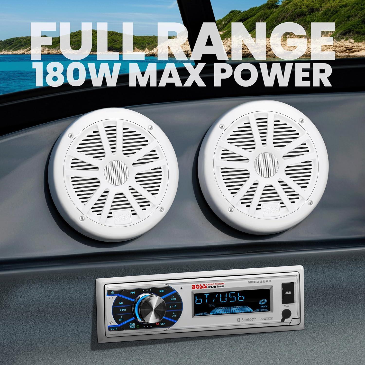 imageBOSS Audio Systems MR62W 65 inch Marine Boat Stereo Speakers  200 Watts per Pair Coaxial 2 Way Full Range 4 Ohms Weatherproof Sold in Pairs