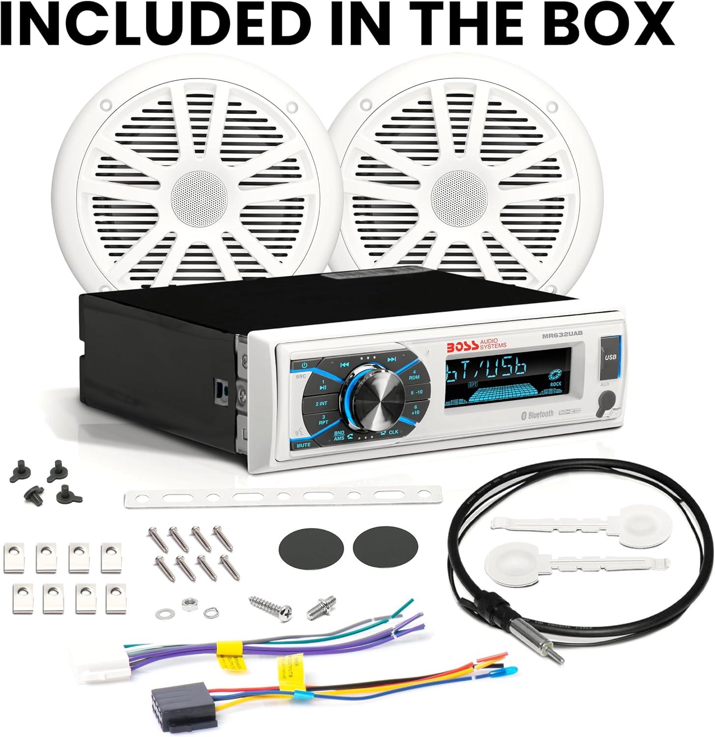 BOSS Audio Systems MCK632WB.6 Marine Boat Bluetooth Stereo & 6.5 Inch Speakers – No CD DVD Player, AM/FFM Radio Receiver Head Unit, Dipole Antenna