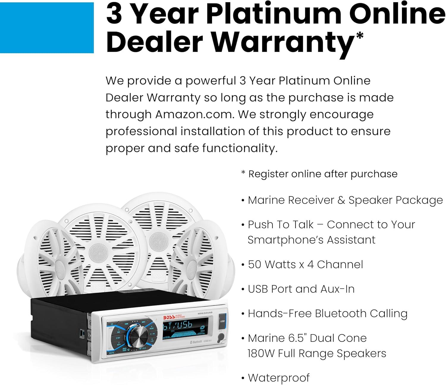 BOSS Audio Systems provides a powerful 3-year platinum online dealer warranty so long as the purchase is made through Amazon.com. We strongly encourage professional installation of this product to ensure proper and safe functionality