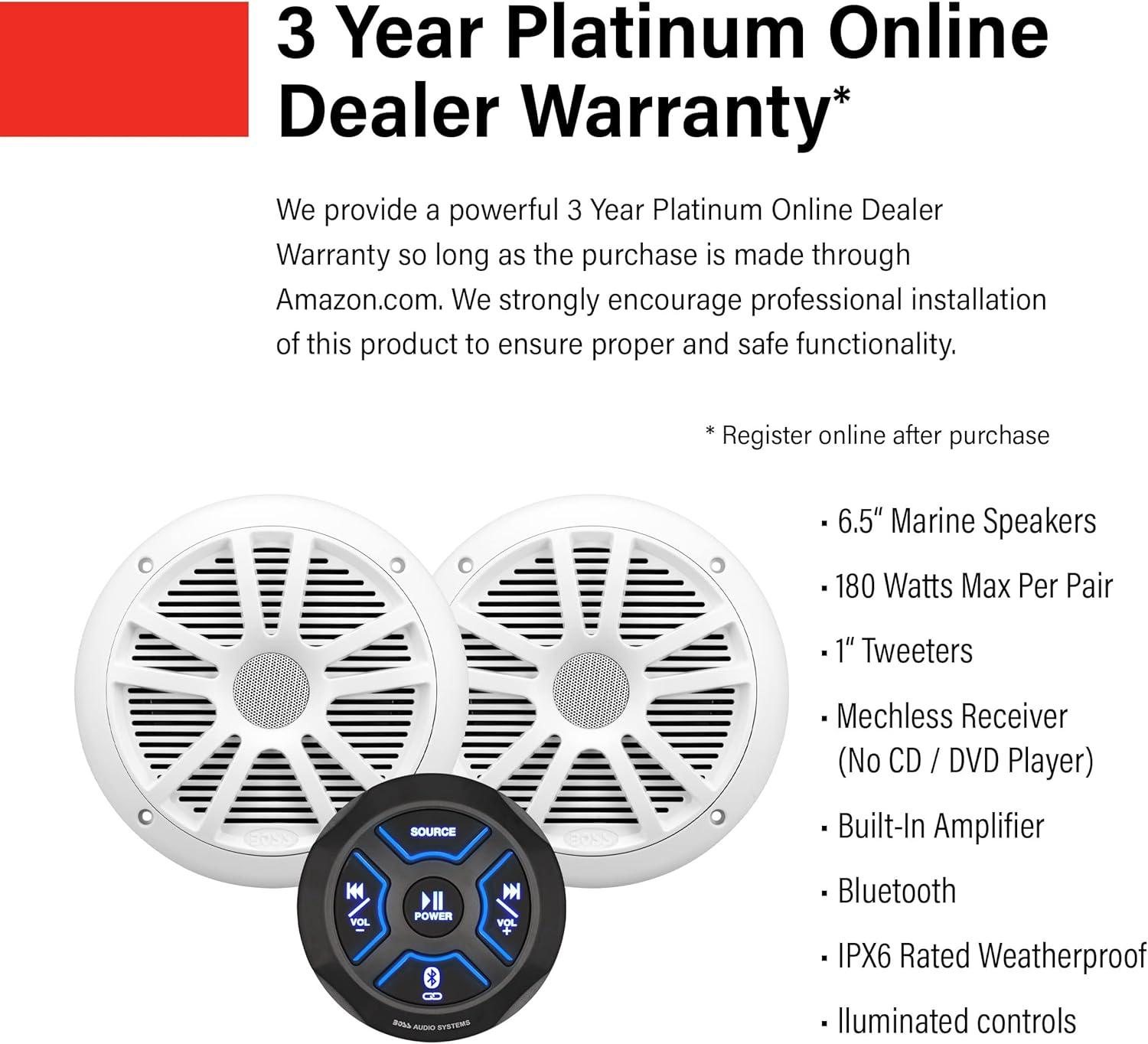 BOSS Audio Systems MG150W.6 Marine Boat Stereo Sound System Speaker Package – Built-In 2 Cannel Amplifier Head Unit, IPX6 Weatherproof, Bluetooth, No CD Player, USB, 6.5 Inch Full Range Speakers
