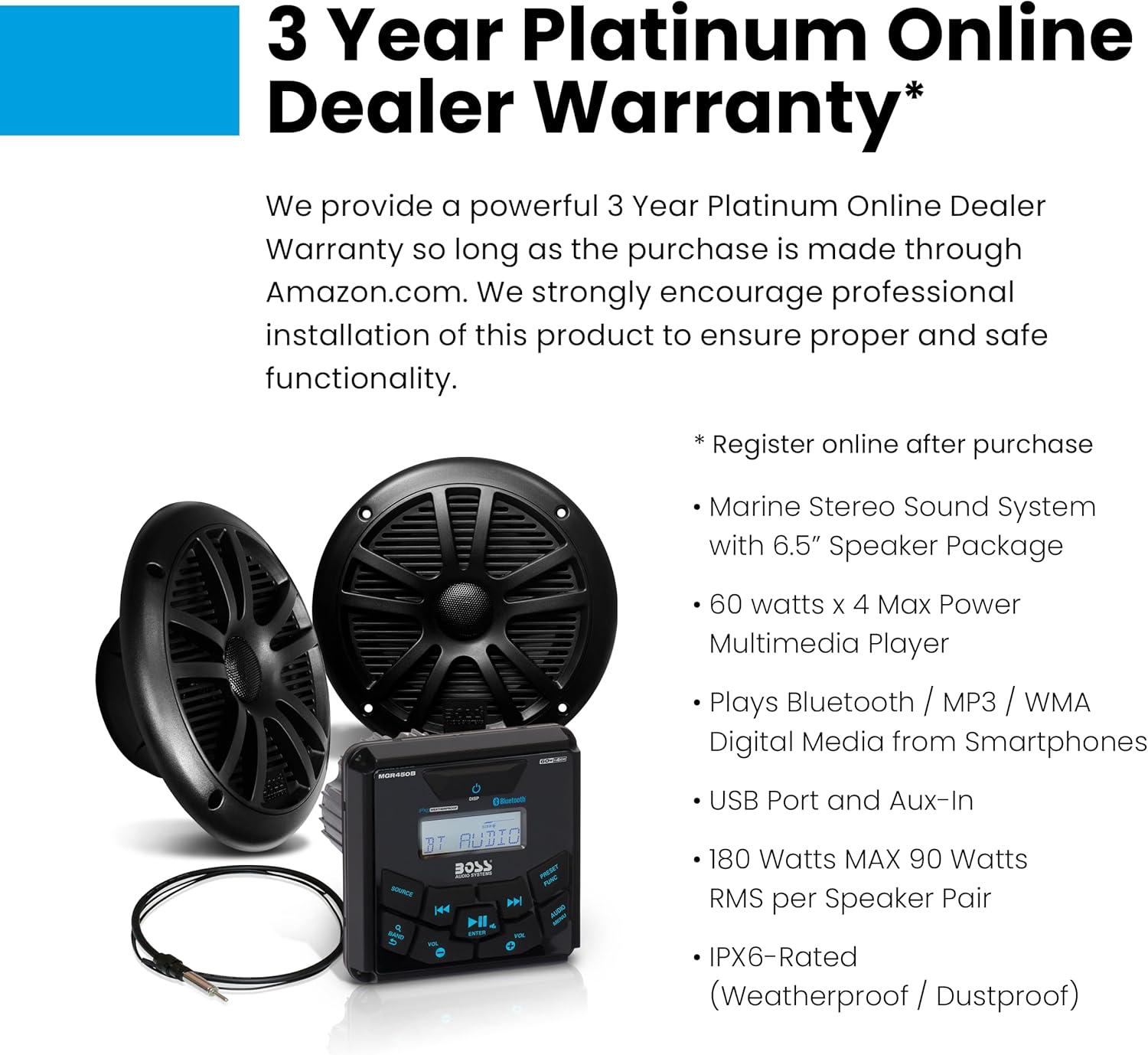 BOSS Audio Systems provides a powerful 3-year platinum online dealer warranty so long as the purchase is made through Amazon.com. We strongly encourage professional installation of this product to ensure proper and safe functionality