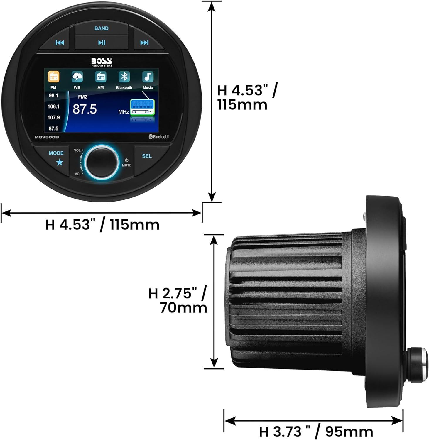 BOSS Audio Systems MGV520B Marine Gauge Receiver – Weatherproof, 3 Inch LCD, Built-in Amplifier, Bluetooth, Digital Media MP3 Player, No CD Player, USB Port, AM/FM Radio(MGR300B Receiver)