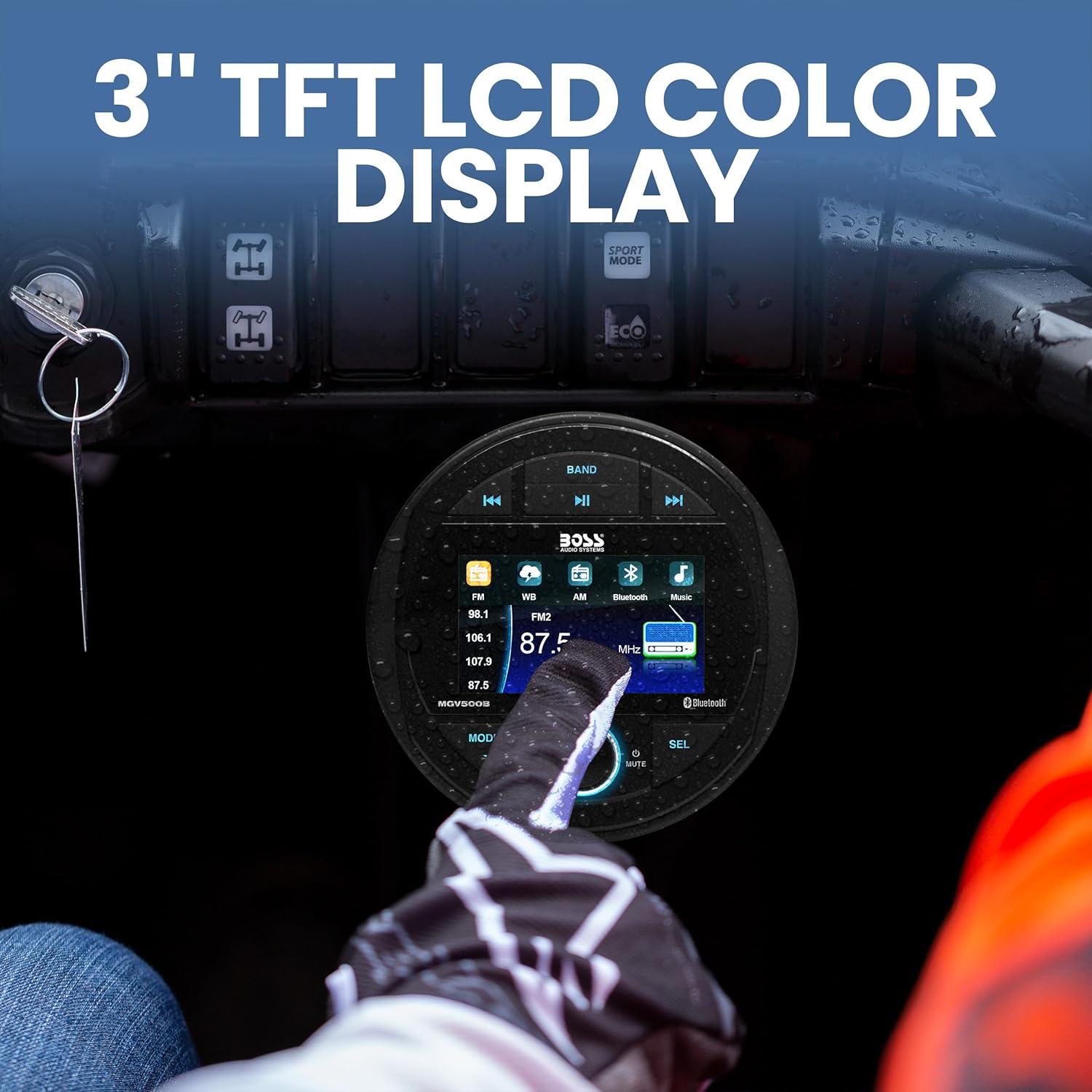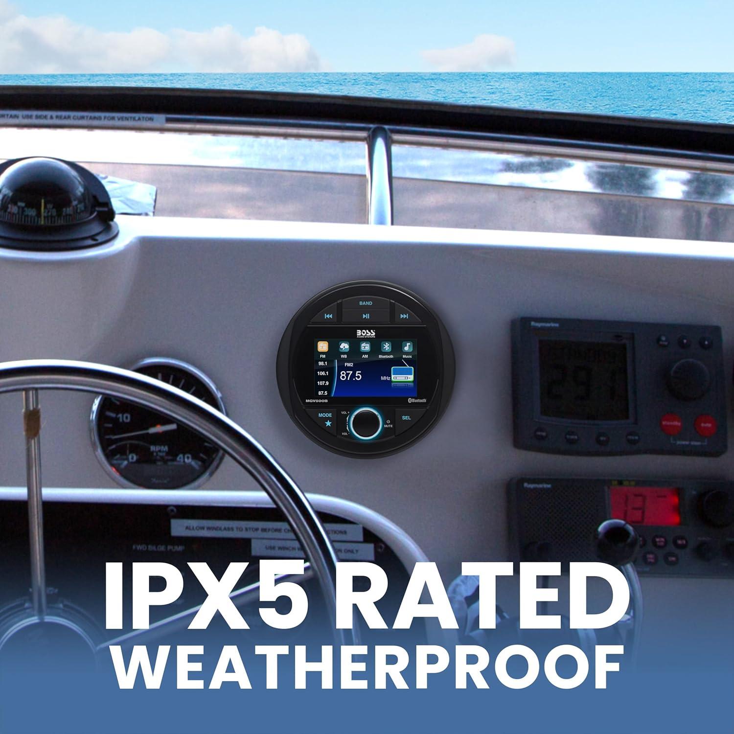 BOSS Audio Systems MGV520B Marine Gauge Receiver – Weatherproof, 3 Inch LCD, Built-in Amplifier, Bluetooth, Digital Media MP3 Player, No CD Player, USB Port, AM/FM Radio(MGV500B Receiver)