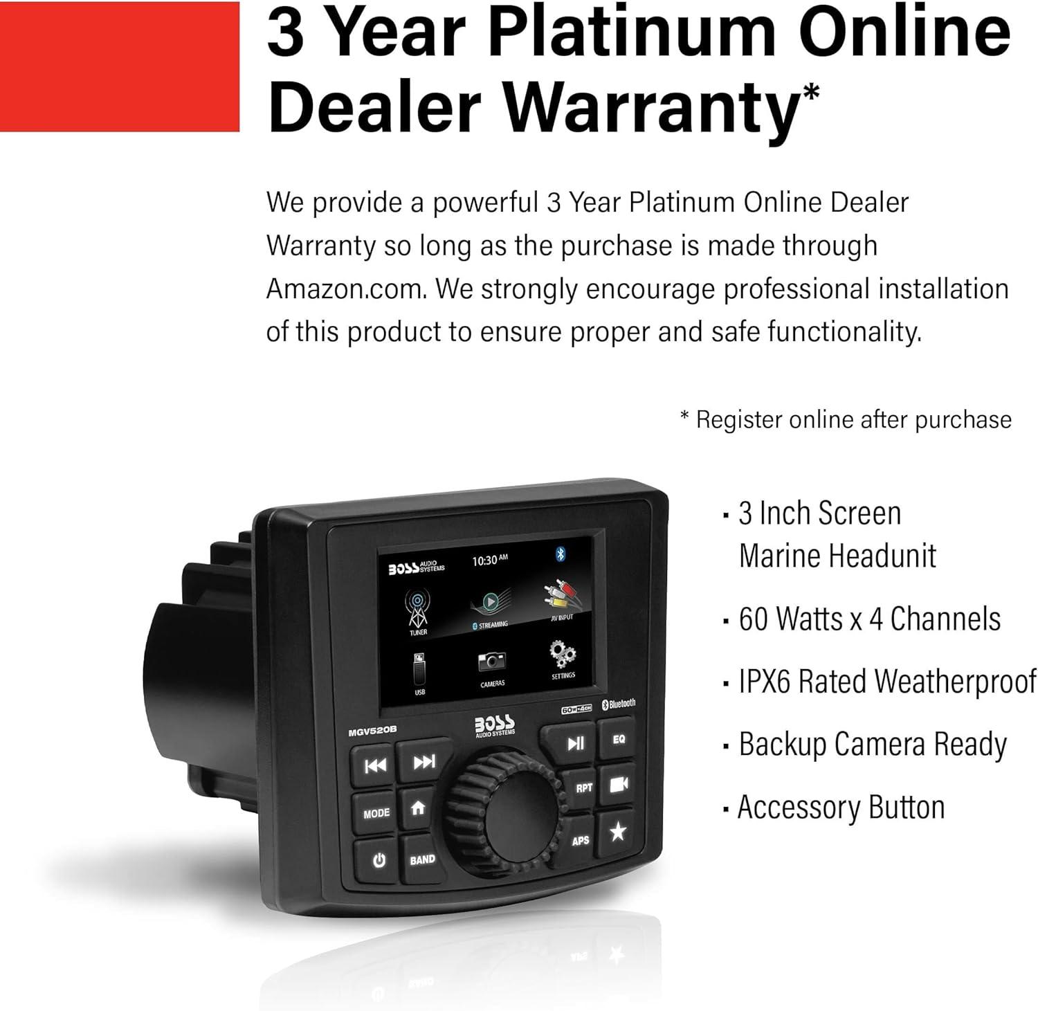 Warranty – BOSS Audio Systems provides a powerful 3-year platinum online dealer warranty so long as the purchase is made through Amazon.com. We strongly encourage professional installation of this product to ensure proper and safe functionality