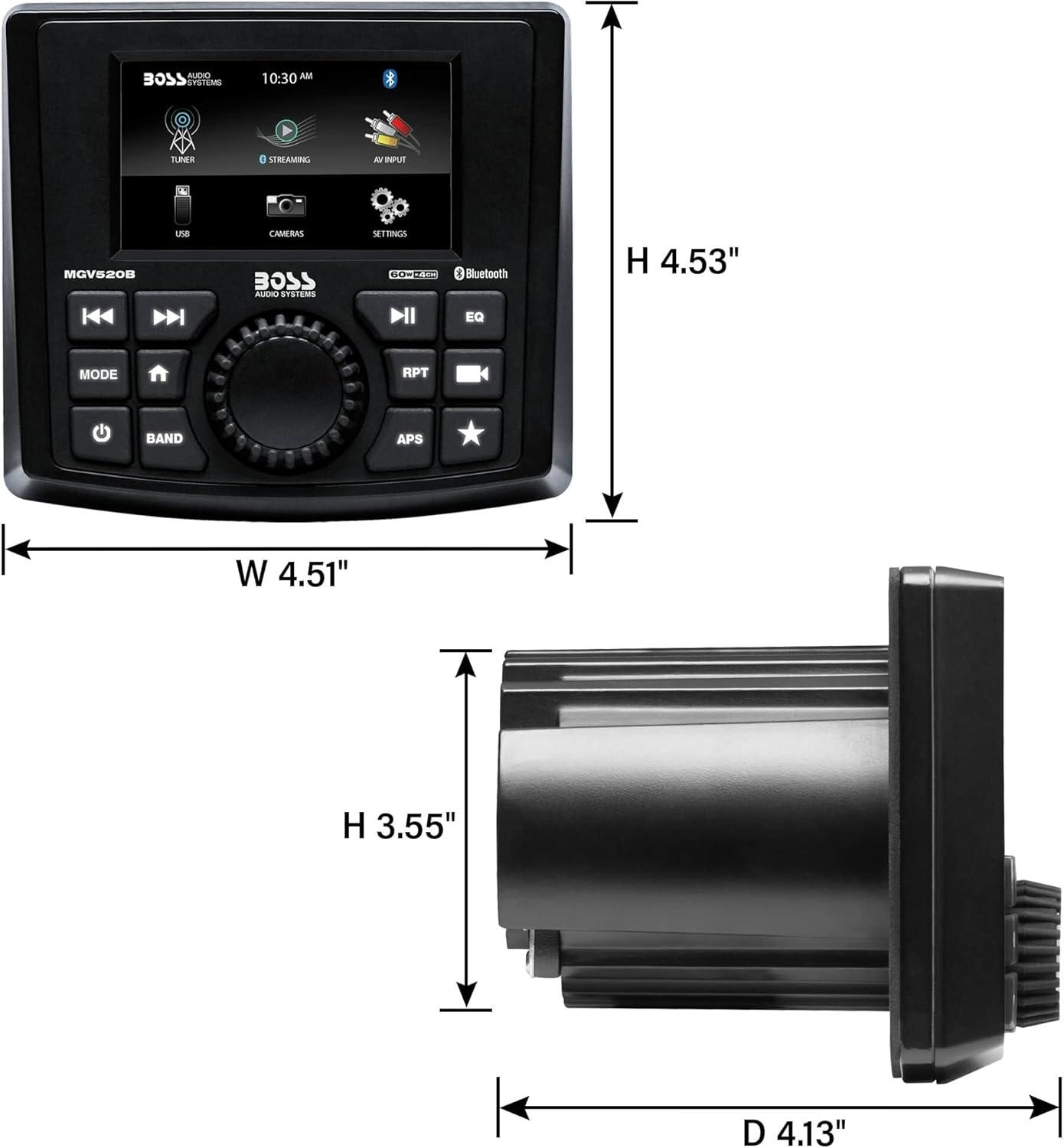 BOSS Audio Systems MGV520B Marine Gauge Receiver – Weatherproof, 3 Inch LCD, Built-in Amplifier, Bluetooth, Digital Media MP3 Player, No CD Player, USB Port, AM/FM Radio(MGV500B Receiver)